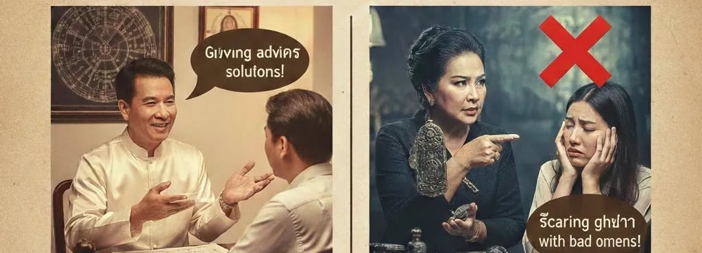 โหรที่ต้องระวัง: จะบอกว่า "แกตายแน่ถ้าไม่แก้ดวง" หรือ "ต้องเลิกกับแฟนคนนี้เท่านั้นถึงจะรวย" (อันนี้ล้ำเส้นชีวิตเราเกินไปครับ)